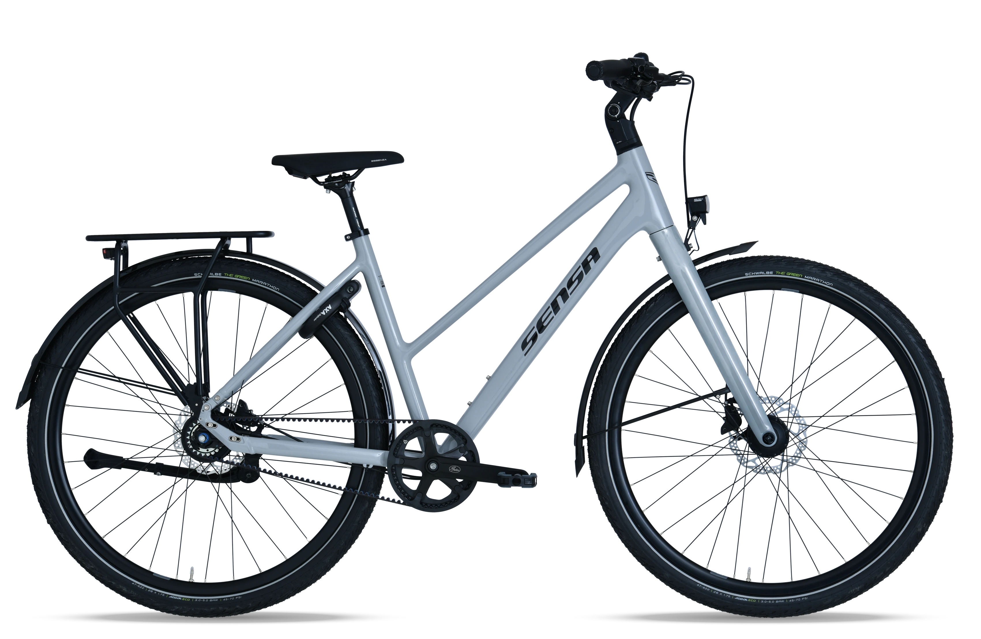 The bike for every day, but not ordinary. That's the Cintura Evo Elite in a nutshell. What makes this model so special is that the cables are routed internally at the handlebars, giving it a very attractive appearance. With the high-quality Gates belt drive, you are assured of a durable and quiet drive. The Alfine-8 gear hub shifts smoothly and requires little maintenance. When it matters, Shimano's hydraulic disc brakes ensure you come to a stop in time. The frame is finished with smooth welds for a modern and chic look. Also available as a gents model.